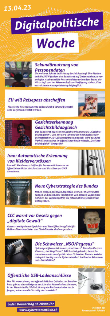 Die Motion "Chat-Kontrolle. Schutz vor anlassloser dauernder Massenüberwachung" [3] wurde im September 2023 mit 144 zu 24 Stimmen vom Nationalrat angenommen und fordert den Bundesrat auf bei der EU zu intervenieren, die geplante Chatkontrolle der EU...